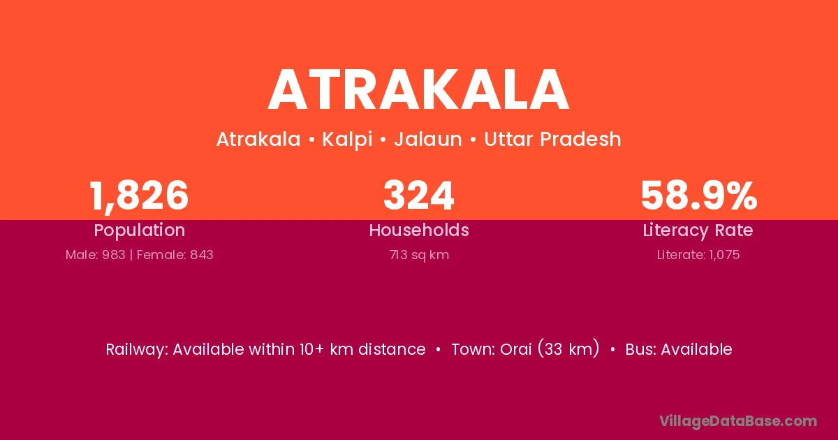 Orai (33 km) is the nearest town to Atrakala village for major economic activities and is located approximately 33 km away.