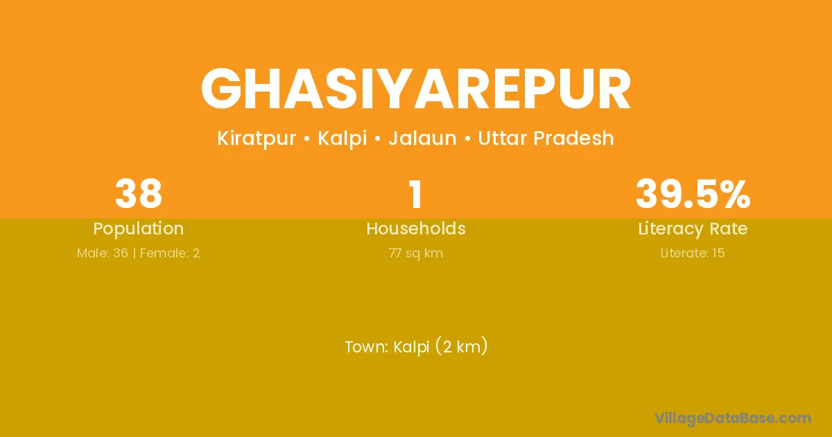 Kalpi (2 km) is the nearest town to Ghasiyarepur village for major economic activities and is located approximately 2 km away.