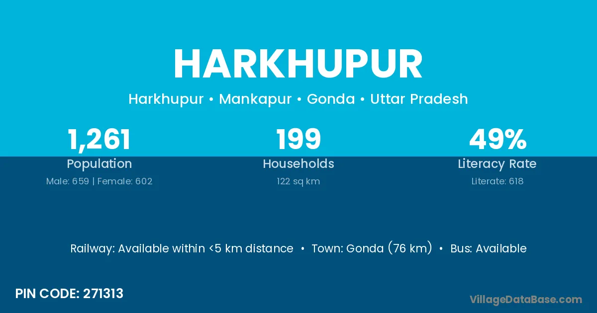 Harkhupur village has a total population of 580 people, of which 320 are males and 260 are females.