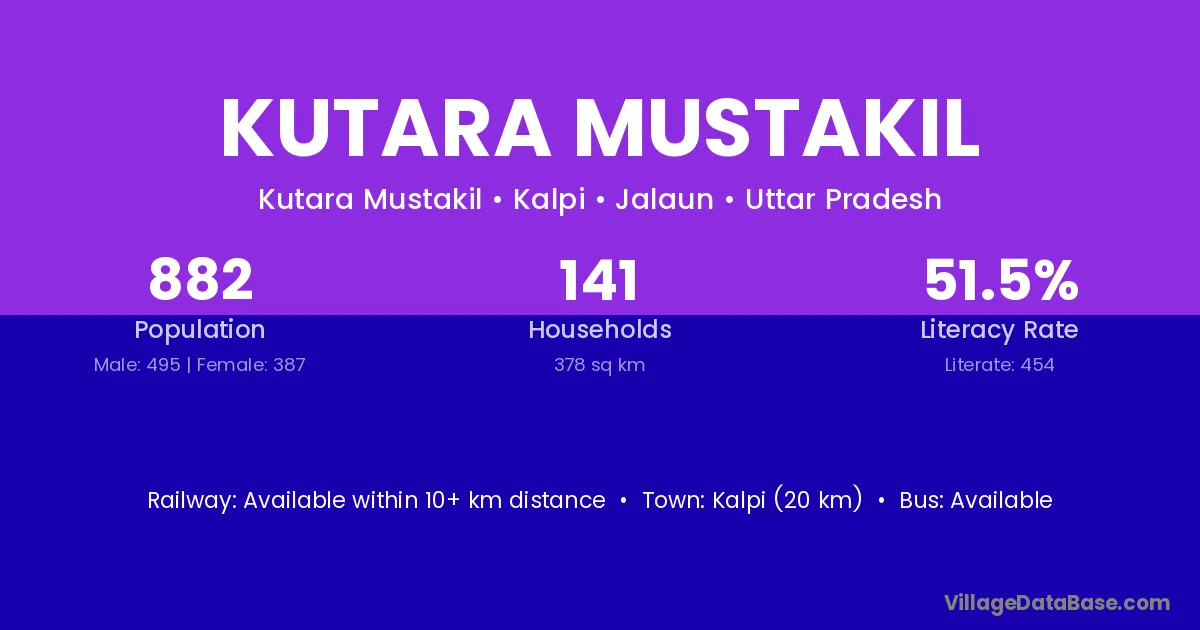 Kalpi (20 km) is the nearest town to Kutara Mustakil village for major economic activities and is located approximately 20 km away.