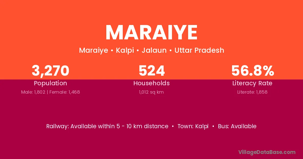 Maraiye village has a total population of 3,270 people, of which 1,802 are males and 1,468 are females.
