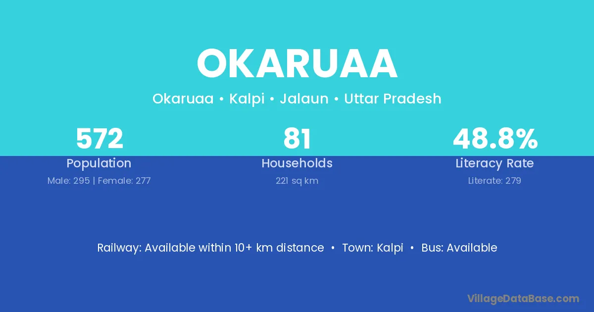 Okaruaa village has a total population of 572 people, of which 295 are males and 277 are females.