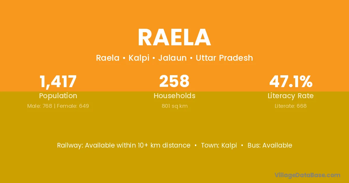 Raela village has a total population of 1,417 people, of which 768 are males and 649 are females.