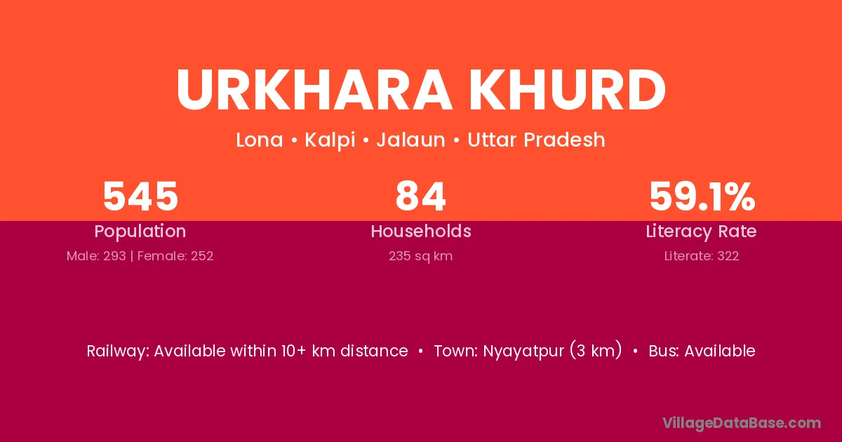 Urkhara Khurd village has a total population of 545 people, of which 293 are males and 252 are females.