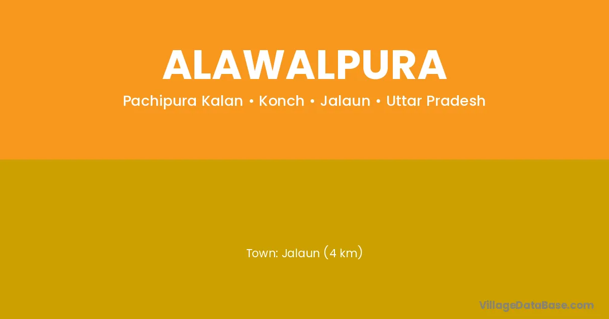 Jalaun (4 km) is the nearest town to Alawalpura village for major economic activities and is located approximately 4 km away.