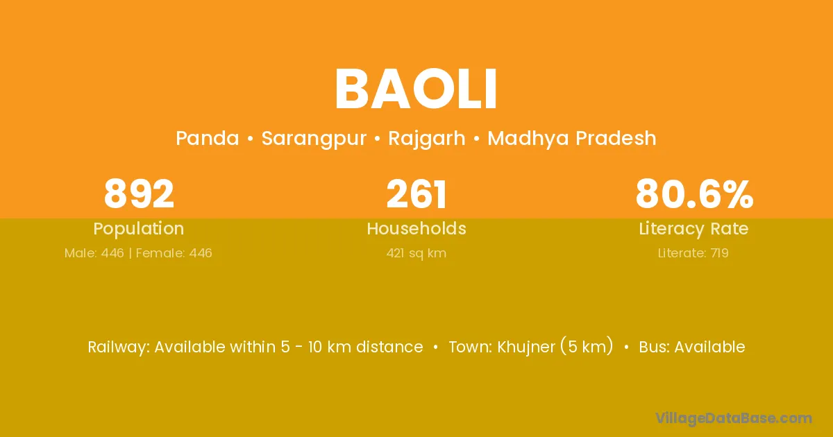 Jalaun (26 km) is the nearest town to Baoli village for major economic activities and is located approximately 26 km away.