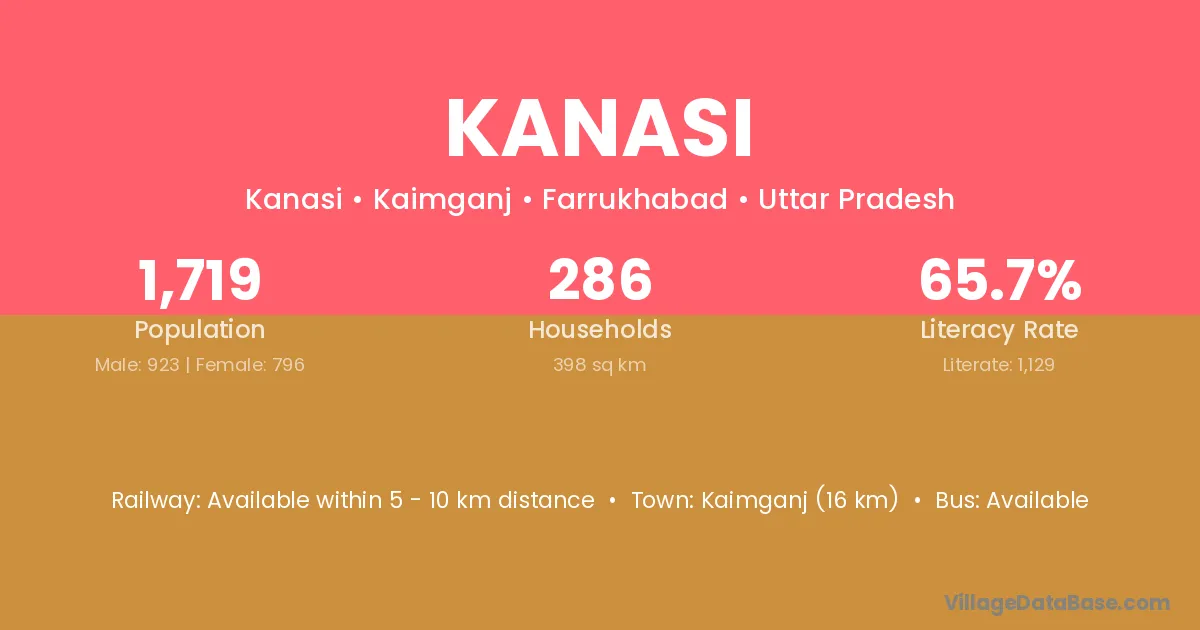 Konch (12 km) is the nearest town to Kanasi village for major economic activities and is located approximately 12 km away.