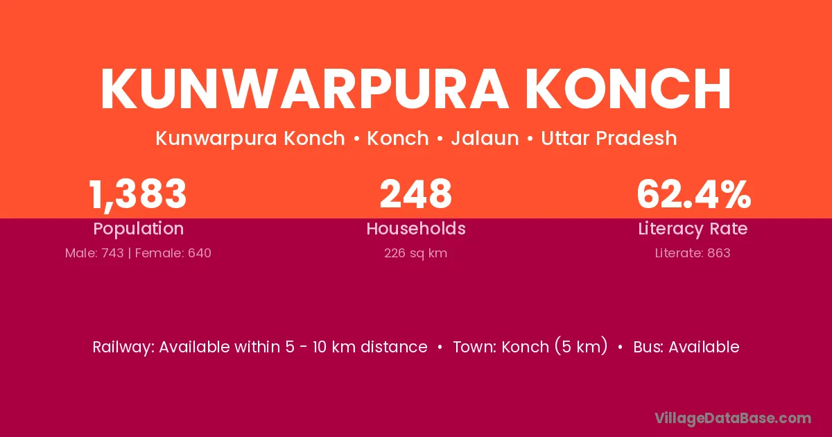Kunwarpura Konch village has a total population of 1,383 people, of which 743 are males and 640 are females.