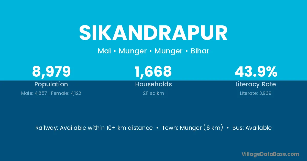 Sikandrapur village has a total population of 997 people, of which 547 are males and 450 are females.