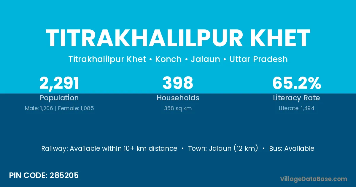 Jalaun (12 km) is the nearest town to Titrakhalilpur Khet village for major economic activities and is located approximately 12 km away.