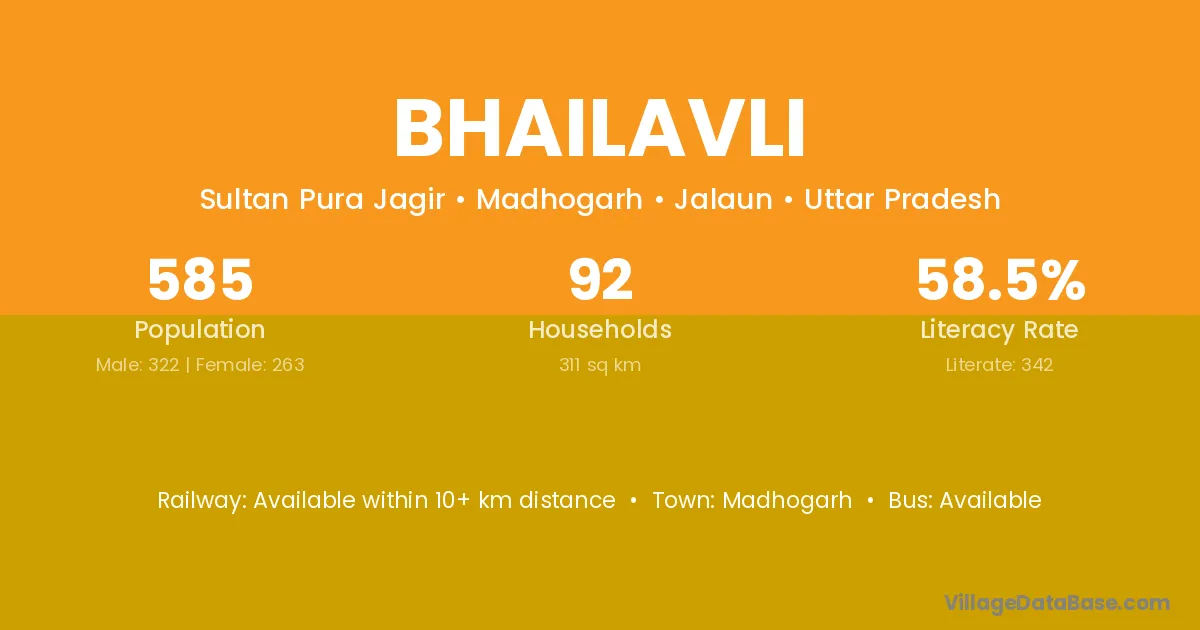 Bhailavli village has a total population of 585 people, of which 322 are males and 263 are females.