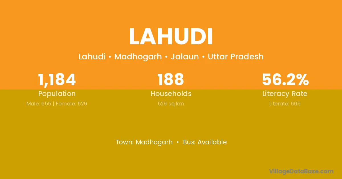 Lahudi village has a total population of 1,184 people, of which 655 are males and 529 are females.