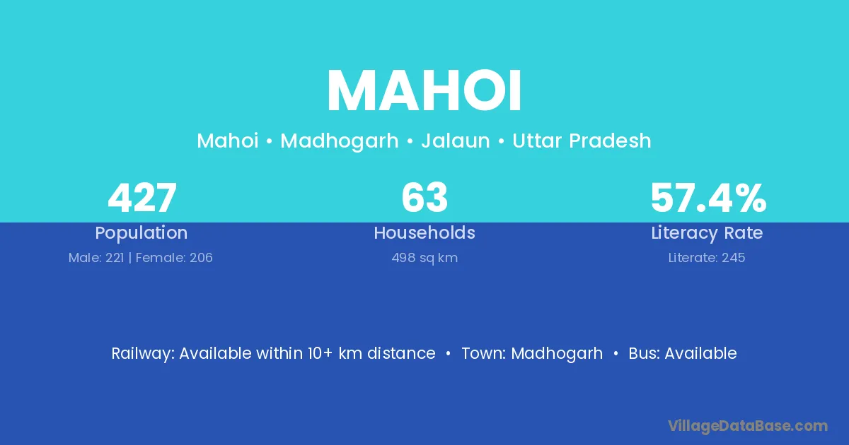 Mahoi village has a total population of 427 people, of which 221 are males and 206 are females.