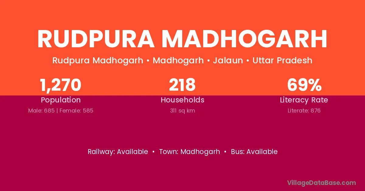 Rudpura Madhogarh village has a total population of 1,270 people, of which 685 are males and 585 are females.