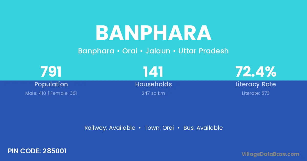 Banphara village has a total population of 791 people, of which 410 are males and 381 are females.