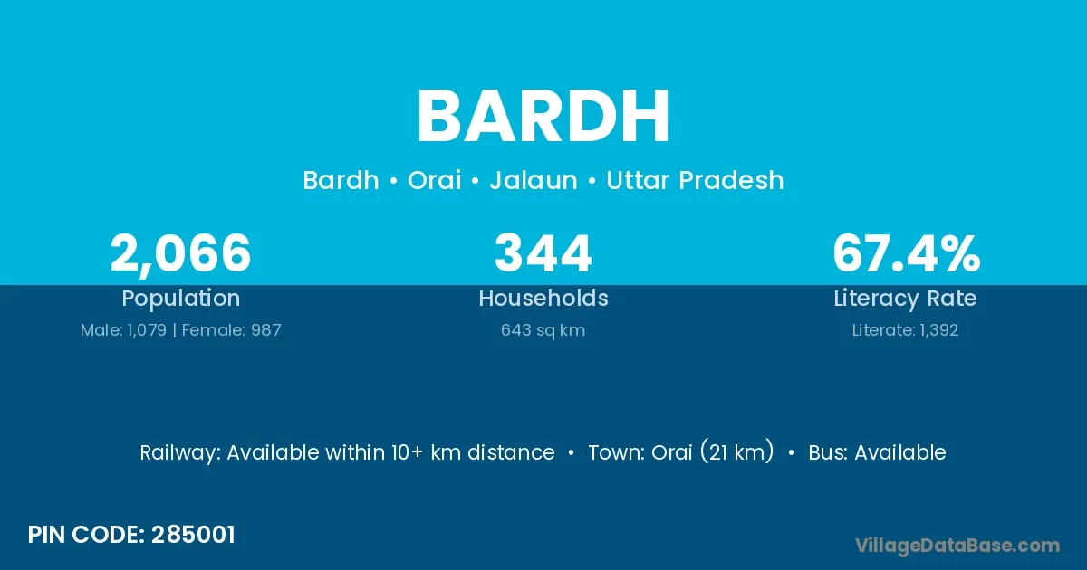 Orai (21 km) is the nearest town to Bardh village for major economic activities and is located approximately 21 km away.