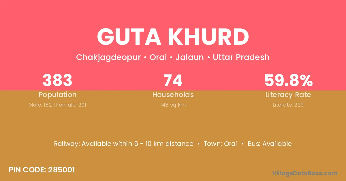 Guta Khurd village has a total population of 383 people, of which 182 are males and 201 are females.