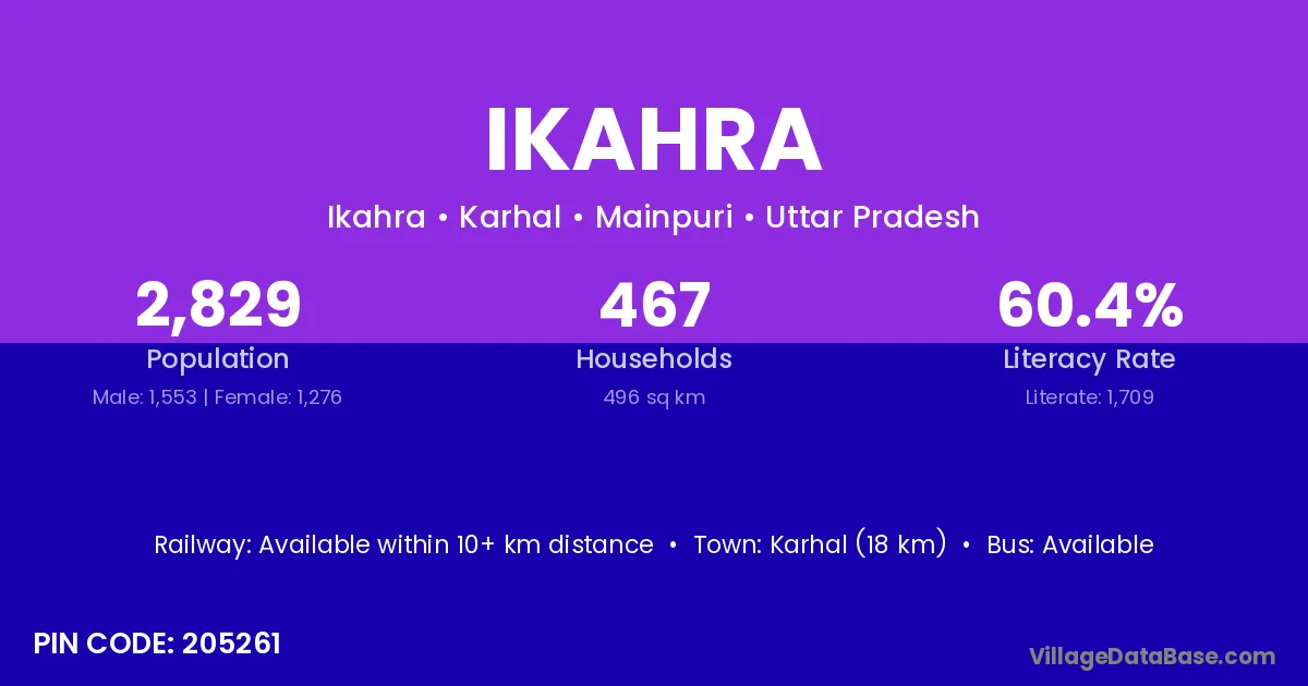 Orai (10 km) is the nearest town to Ikahra village for major economic activities and is located approximately 10 km away.