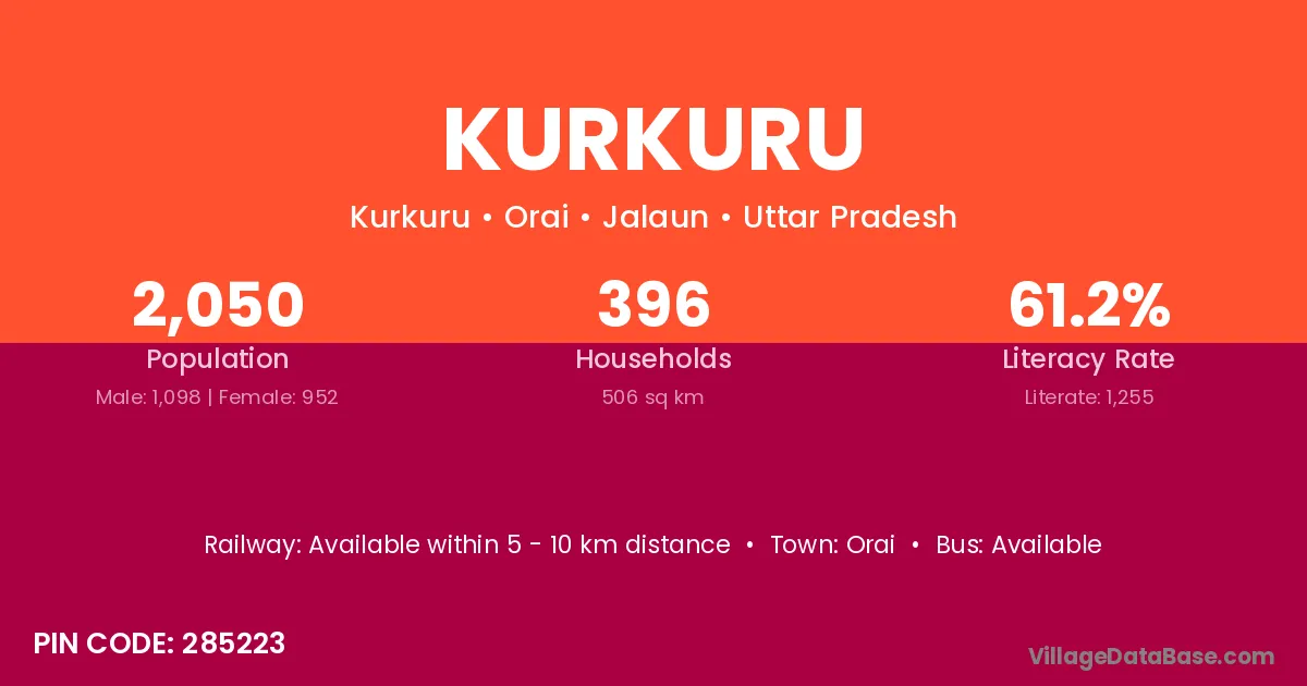 Orai is the nearest town to Kurkuru village for major economic activities