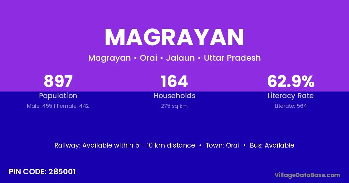 Magrayan village has a total population of 897 people, of which 455 are males and 442 are females.