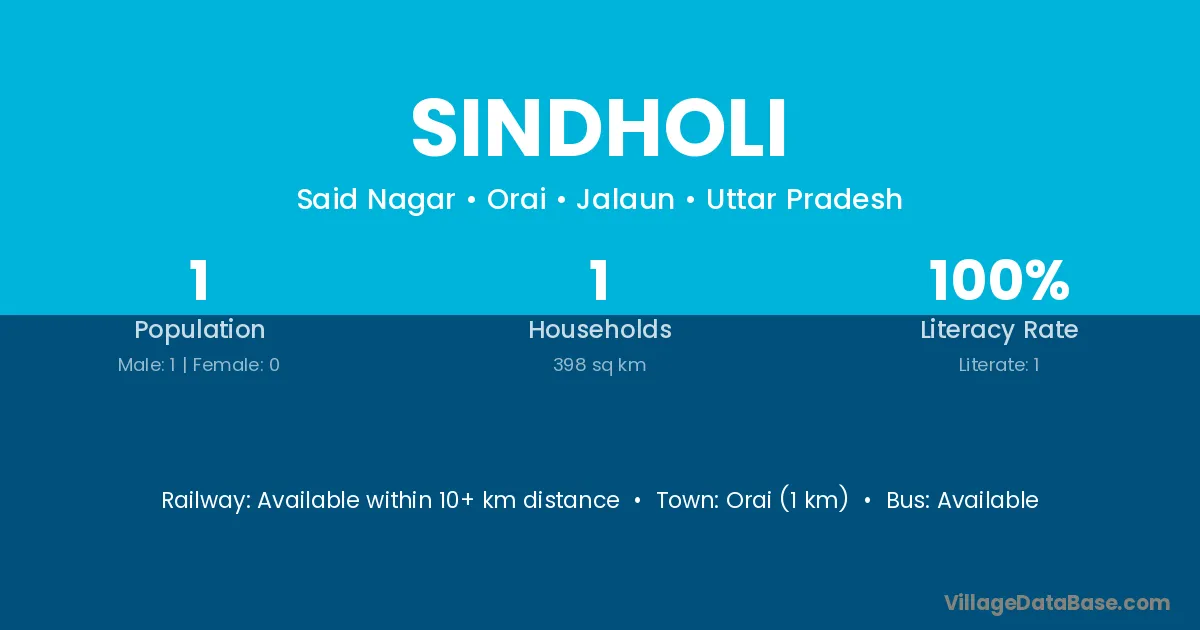 Orai (1 km) is the nearest town to Sindholi village for major economic activities and is located approximately 1 km away.