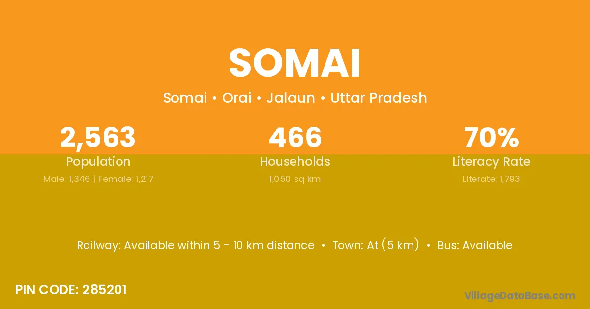 Somai village has a total population of 2,563 people, of which 1,346 are males and 1,217 are females.