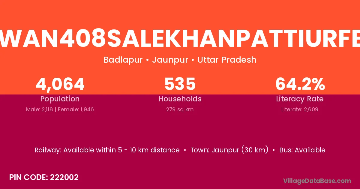 Jaunpur (30 km) is the nearest town to Belawan408salekhanpattiurfbang village for major economic activities and is located approximately 30 km away.