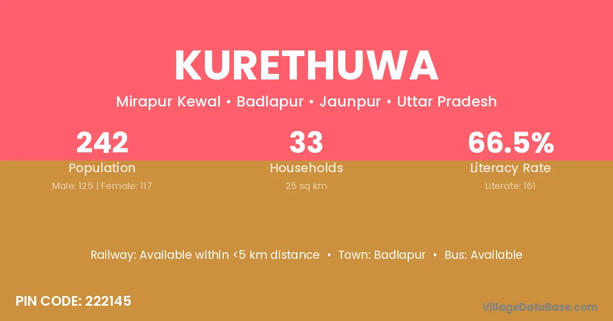 Kurethuwa village has a total population of 242 people, of which 125 are males and 117 are females.