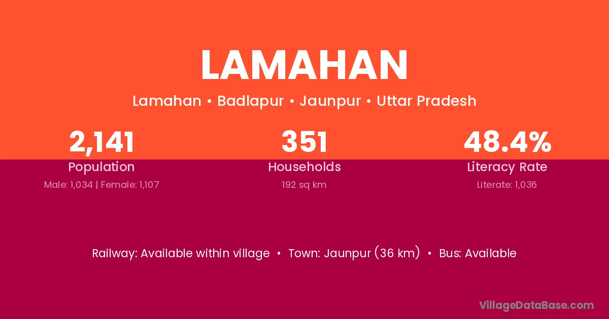 Jaunpur (36 km) is the nearest town to Lamahan village for major economic activities and is located approximately 36 km away.