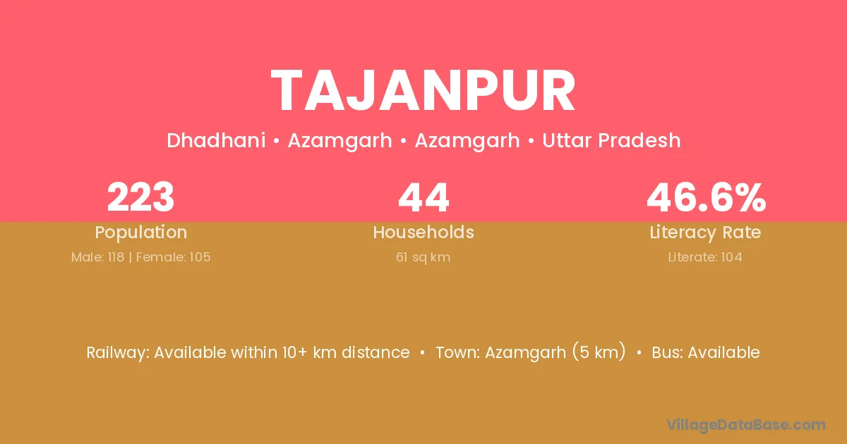 Tajanpur village has a total population of 431 people, of which 211 are males and 220 are females.