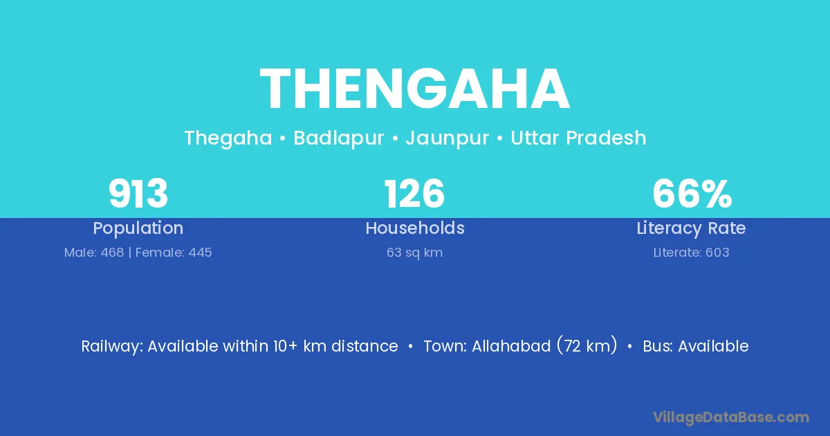 Allahabad (72 km) is the nearest town to Thengaha village for major economic activities and is located approximately 72 km away.