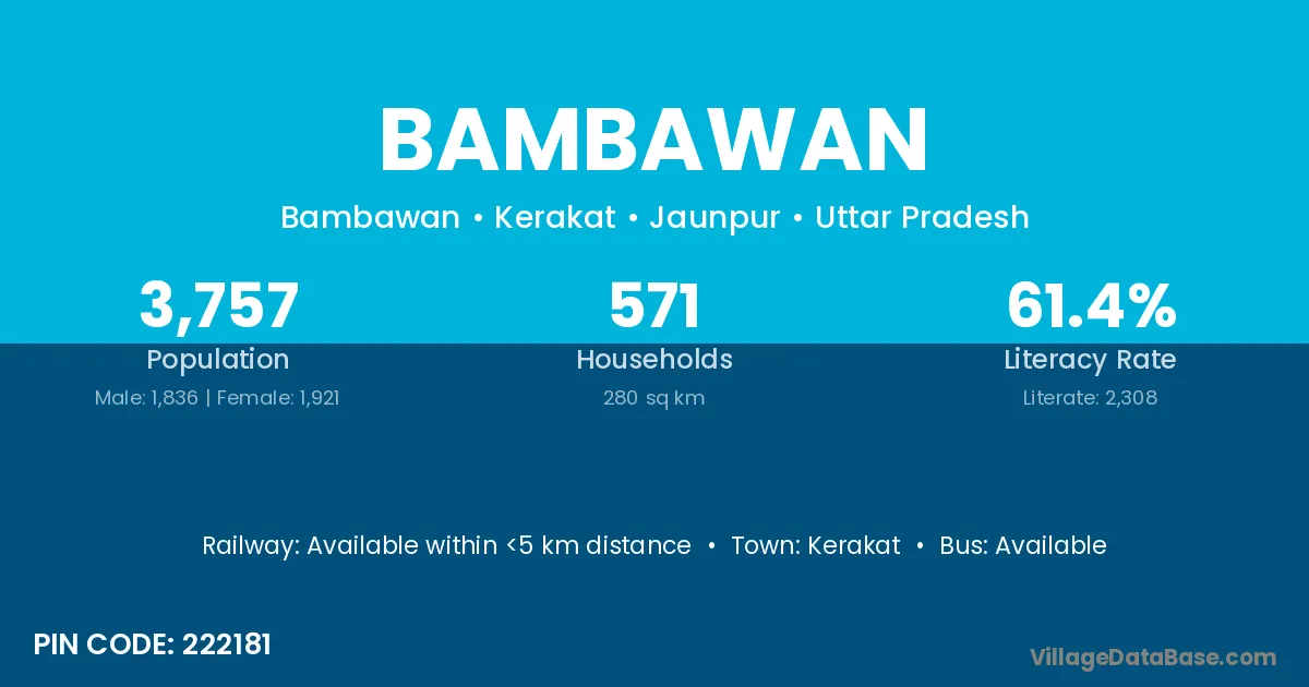 Bambawan village is located in the Kerakat Tehsil of the Jaunpur district in Uttar Pradesh .