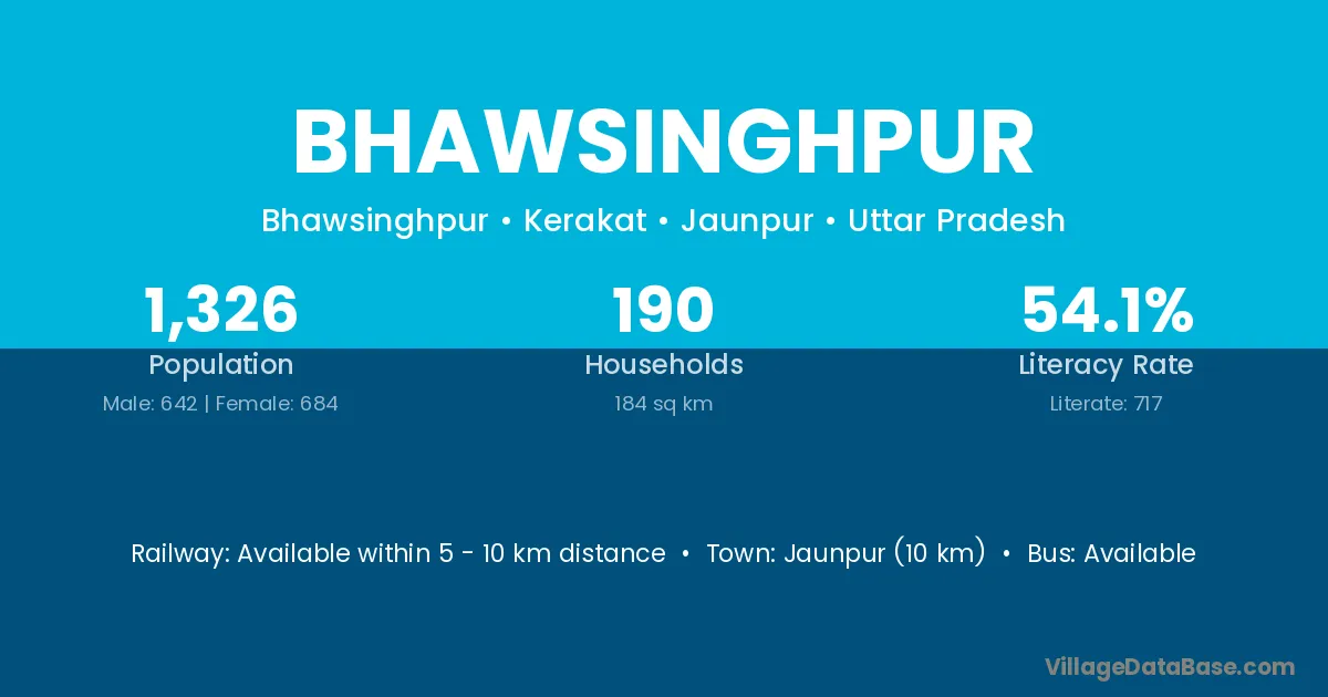 Jaunpur (10 km) is the nearest town to Bhawsinghpur village for major economic activities and is located approximately 10 km away.