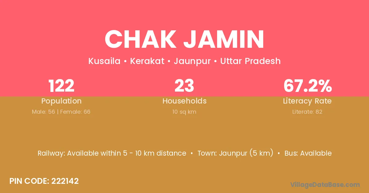 Jaunpur (5 km) is the nearest town to Chak Jamin village for major economic activities and is located approximately 5 km away.