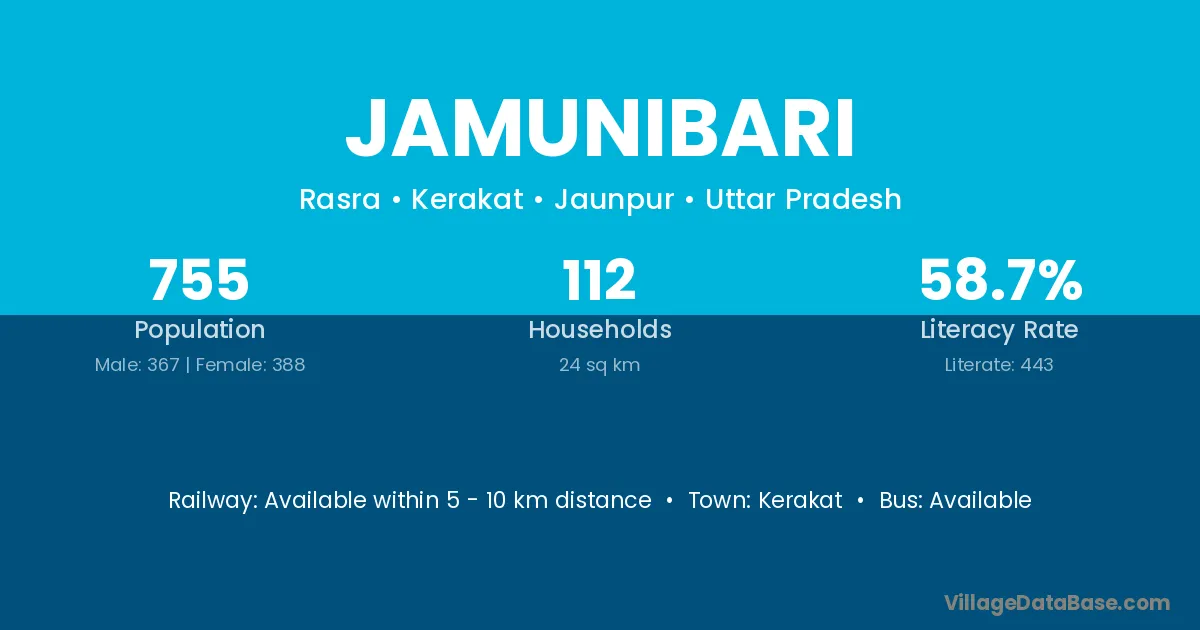 Jamunibari village has a total population of 755 people, of which 367 are males and 388 are females.