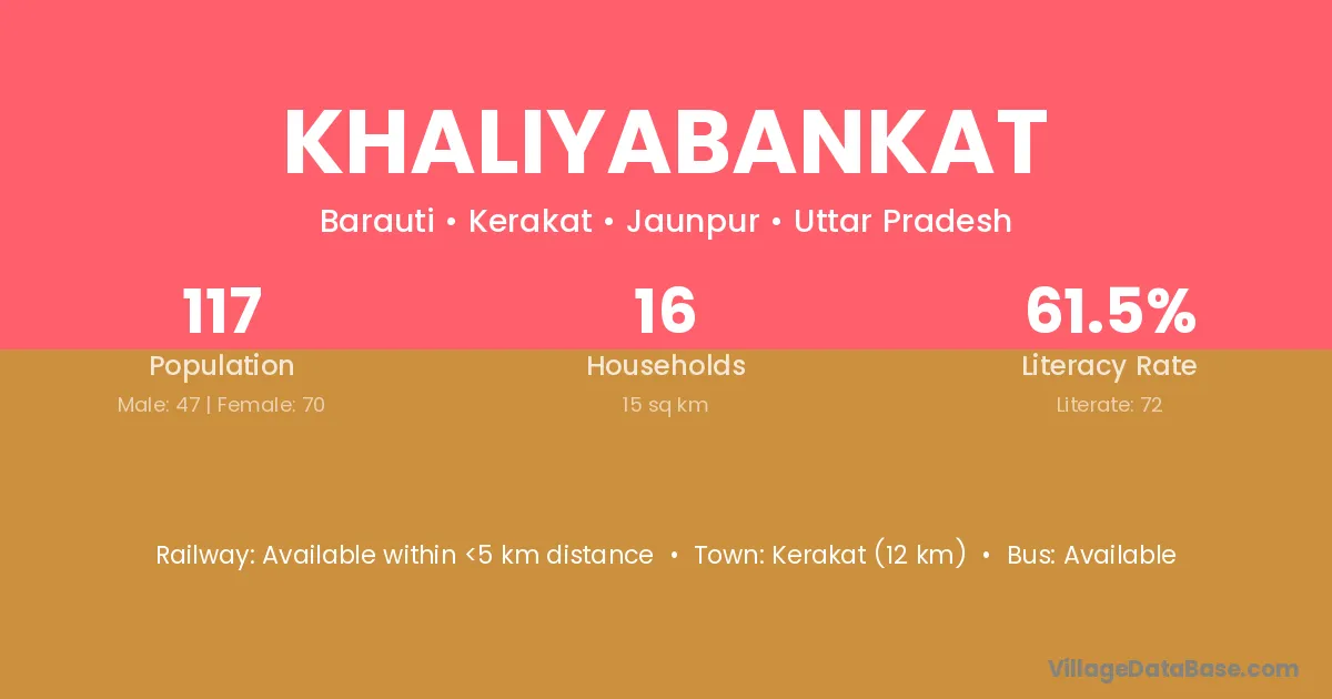 Kerakat (12 km) is the nearest town to Khaliyabankat village for major economic activities and is located approximately 12 km away.
