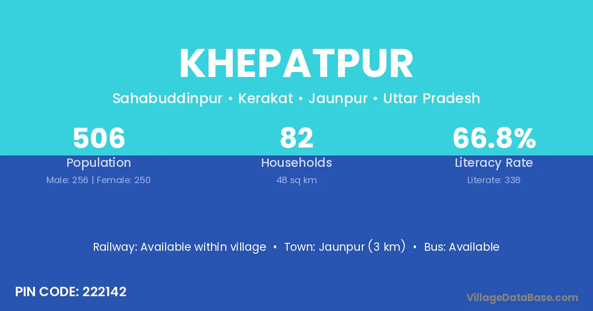 Jaunpur (3 km) is the nearest town to Khepatpur village for major economic activities and is located approximately 3 km away.
