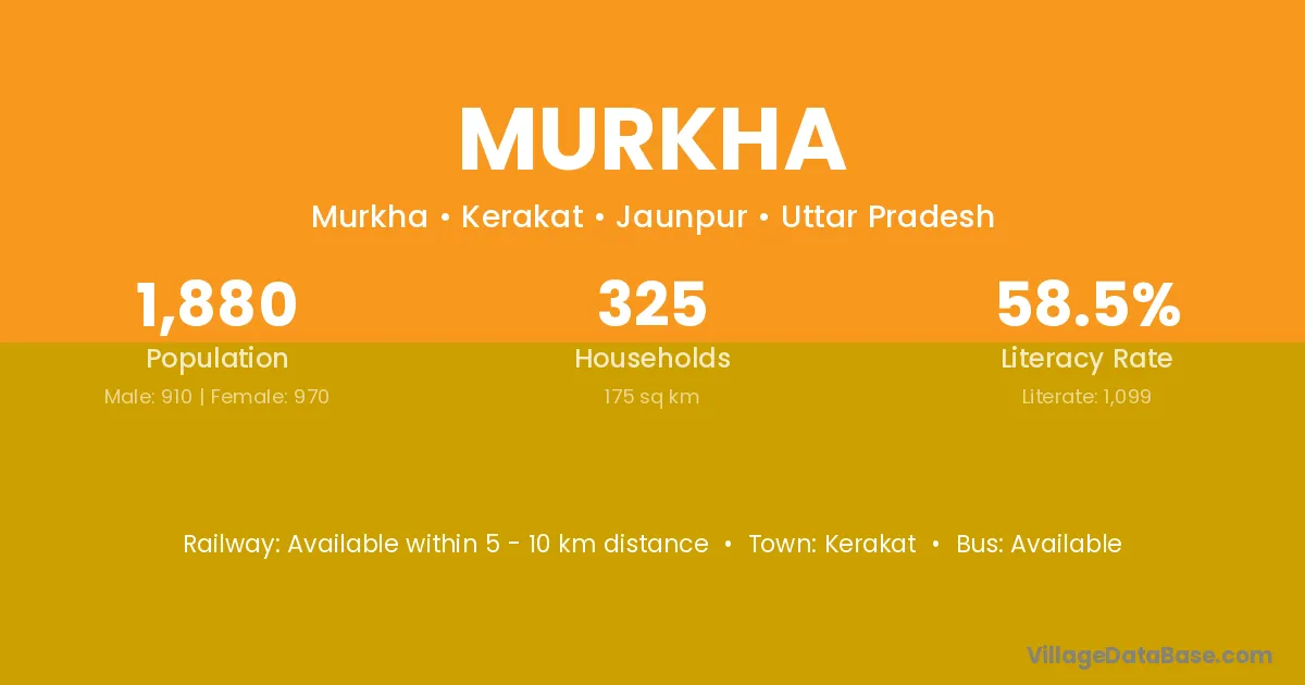 Murkha village has a total population of 1,880 people, of which 910 are males and 970 are females.