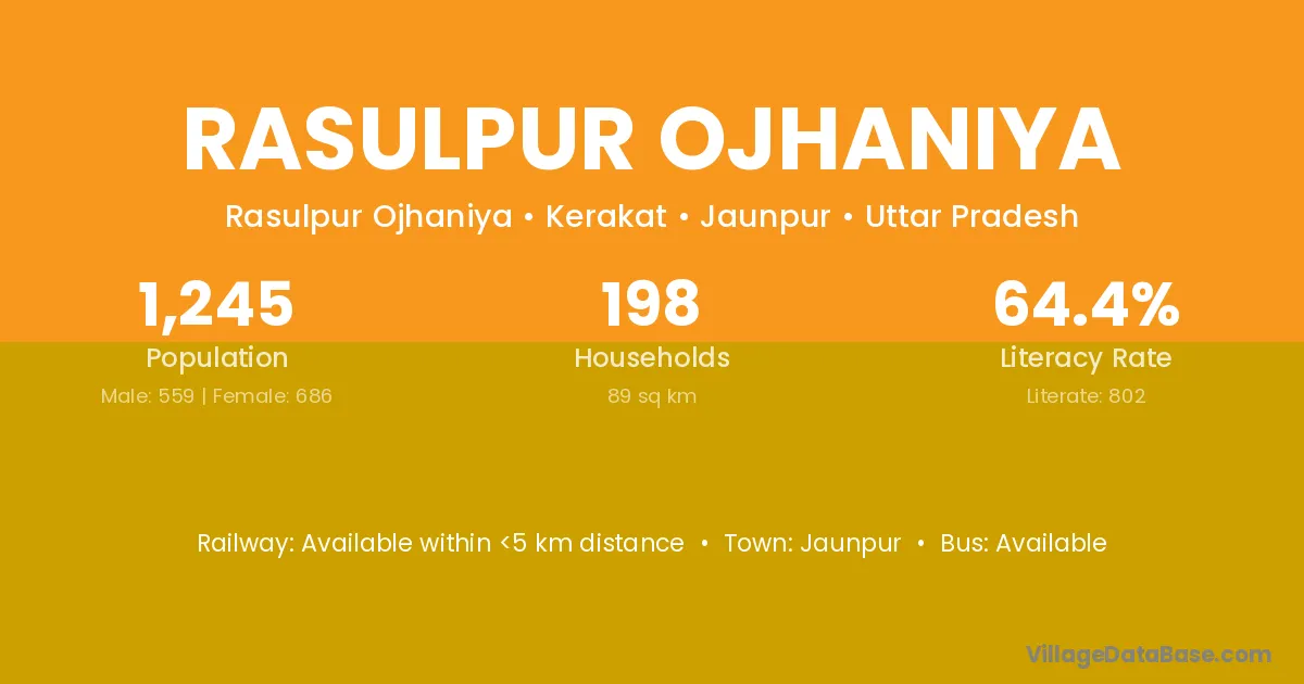 Rasulpur Ojhaniya village has a total population of 1,245 people, of which 559 are males and 686 are females.