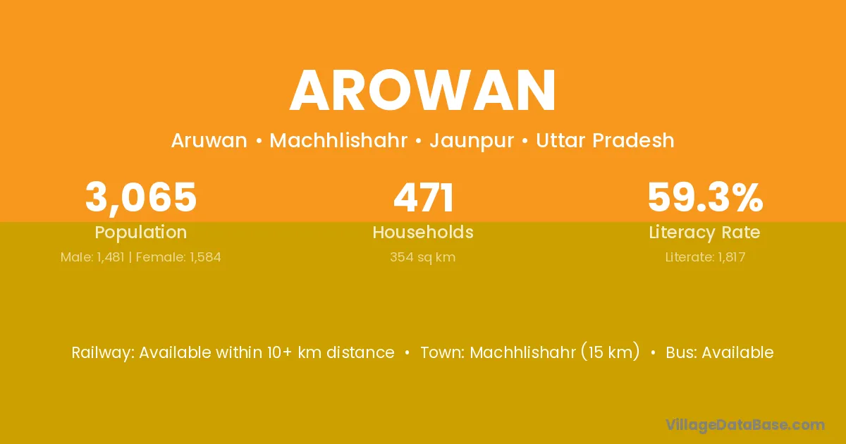 Machhlishahr (15 km) is the nearest town to Arowan village for major economic activities and is located approximately 15 km away.