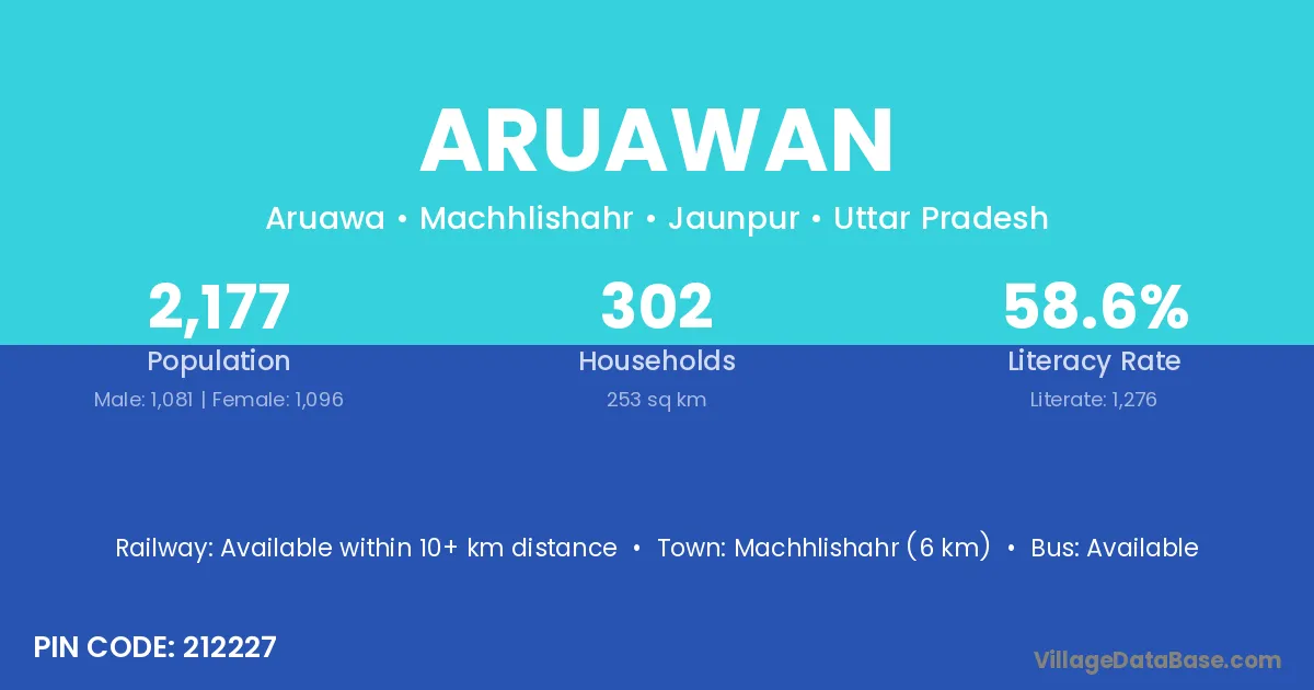 Machhlishahr (6 km) is the nearest town to Aruawan village for major economic activities and is located approximately 6 km away.
