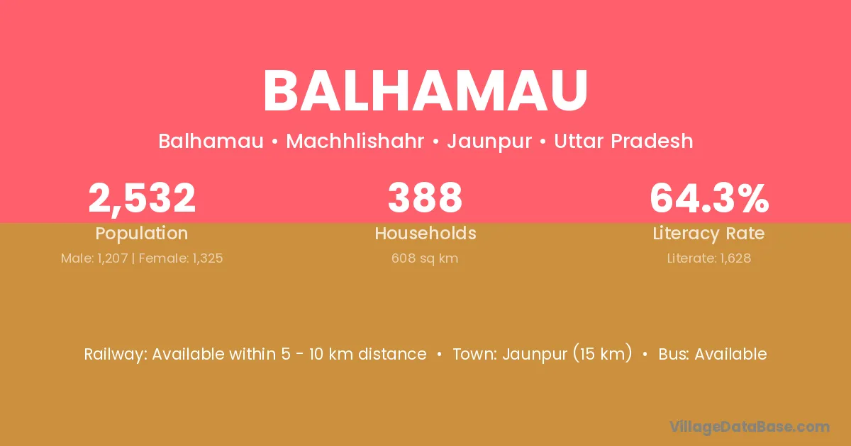 Jaunpur (15 km) is the nearest town to Balhamau village for major economic activities and is located approximately 15 km away.