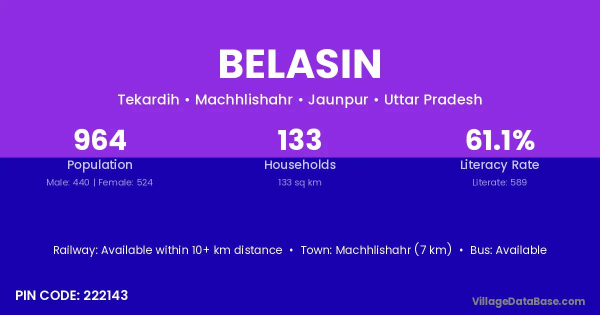 Machhlishahr (7 km) is the nearest town to Belasin village for major economic activities and is located approximately 7 km away.