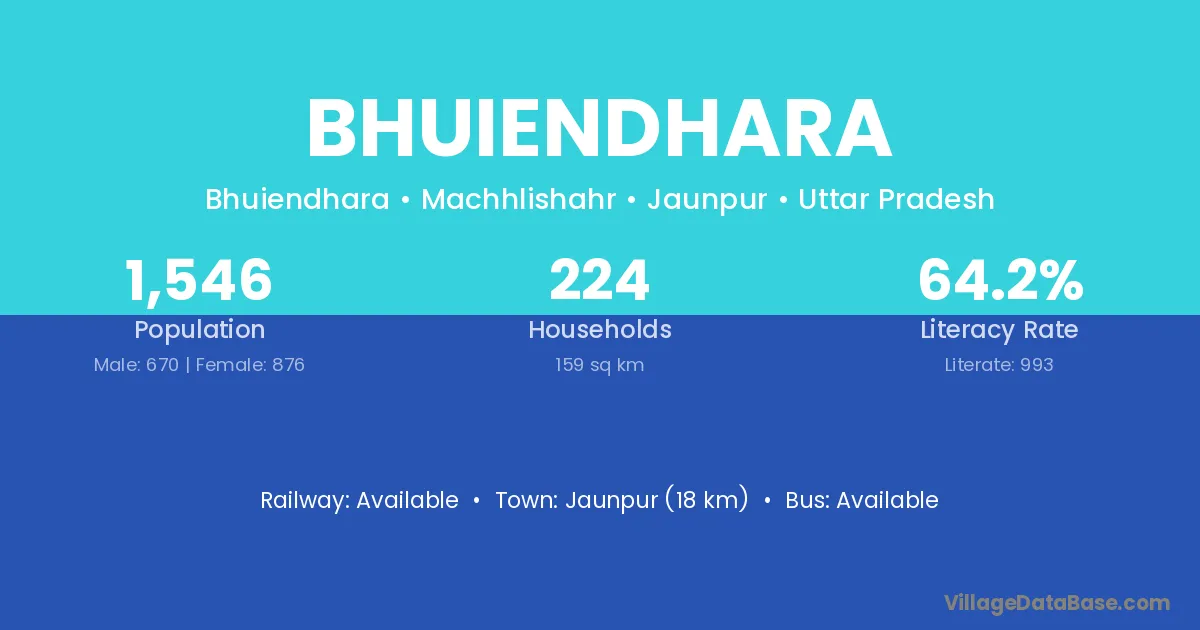 Jaunpur (18 km) is the nearest town to Bhuiendhara village for major economic activities and is located approximately 18 km away.