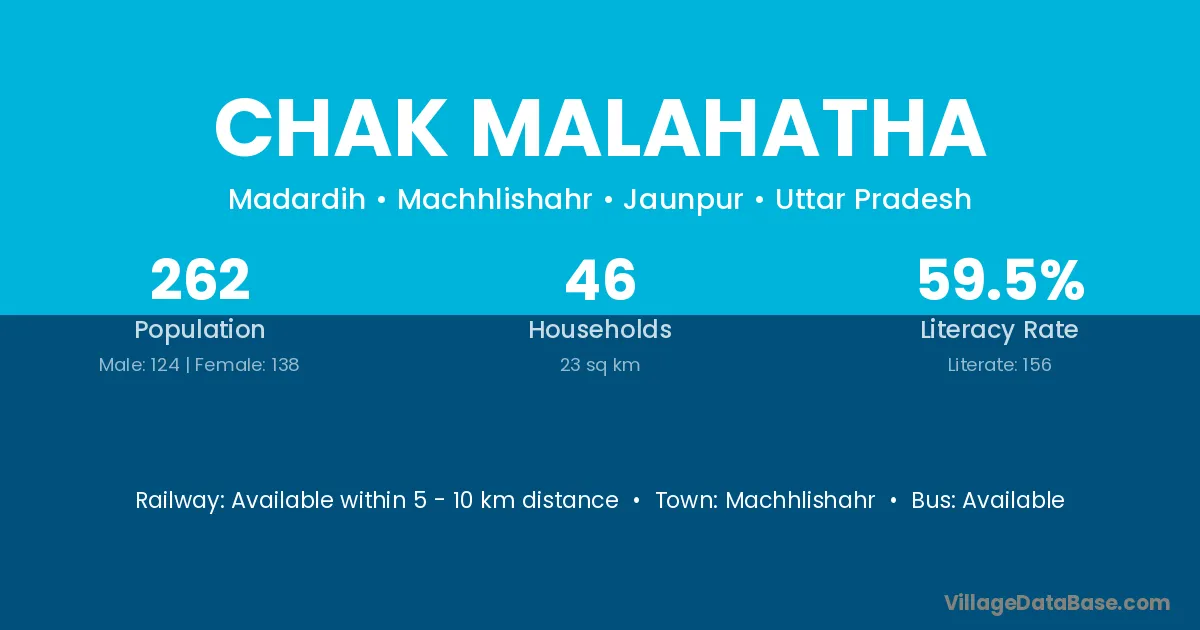 Chak Malahatha village has a total population of 262 people, of which 124 are males and 138 are females.