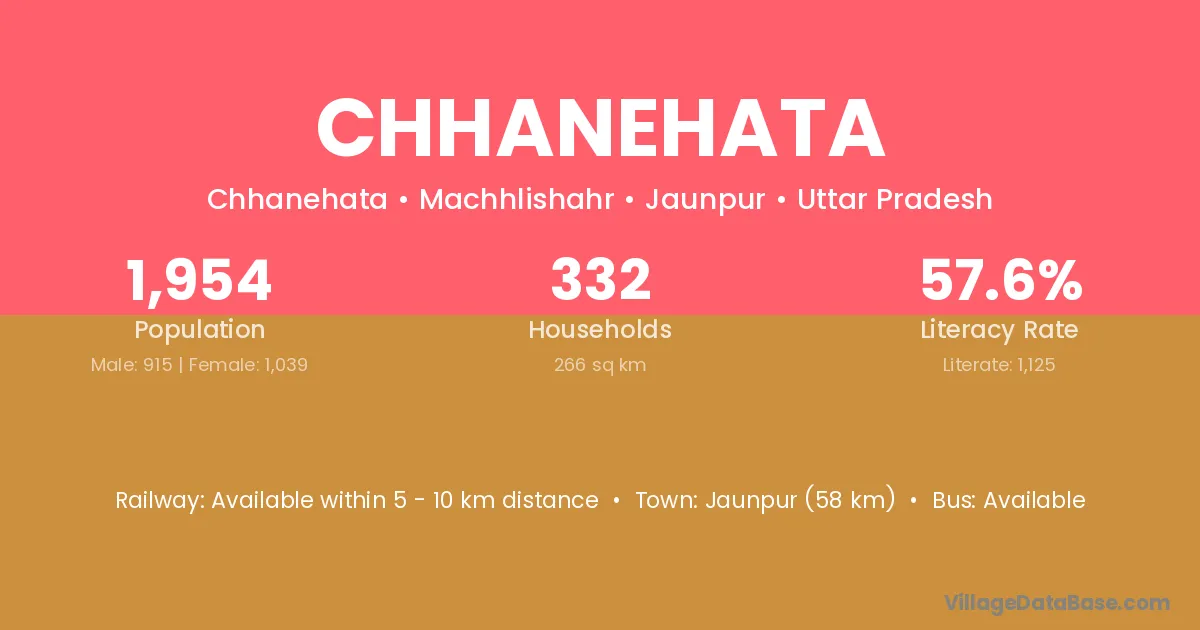 Jaunpur (58 km) is the nearest town to Chhanehata village for major economic activities and is located approximately 58 km away.