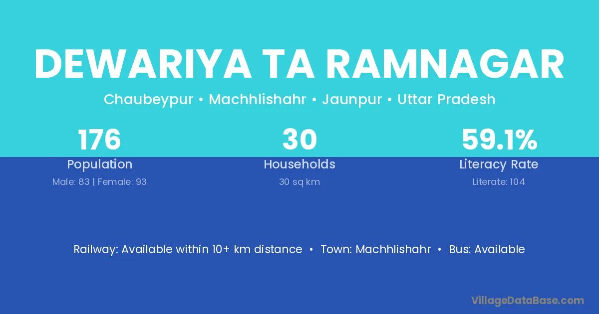 Dewariya Ta Ramnagar village has a total population of 176 people, of which 83 are males and 93 are females.