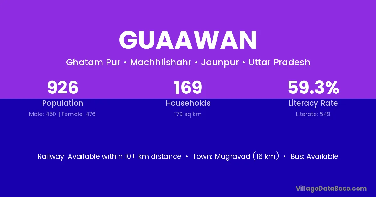 Mugravad (16 km) is the nearest town to Guaawan village for major economic activities and is located approximately 16 km away.