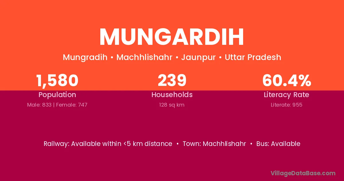 Mungardih village has a total population of 1,580 people, of which 833 are males and 747 are females.
