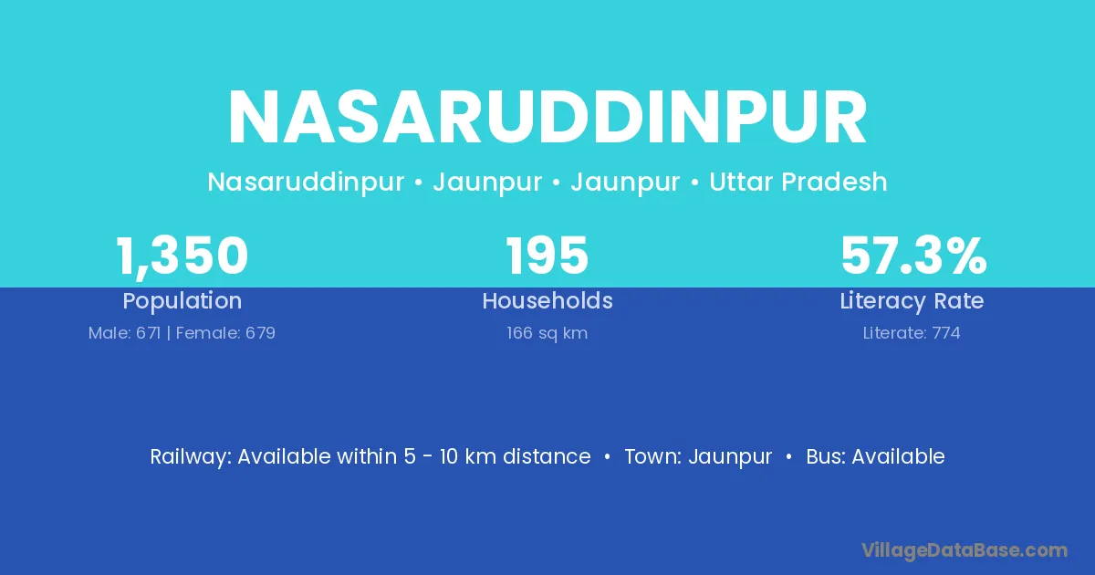 Machhlishahr (1 km) is the nearest town to Nasaruddinpur village for major economic activities and is located approximately 1 km away.